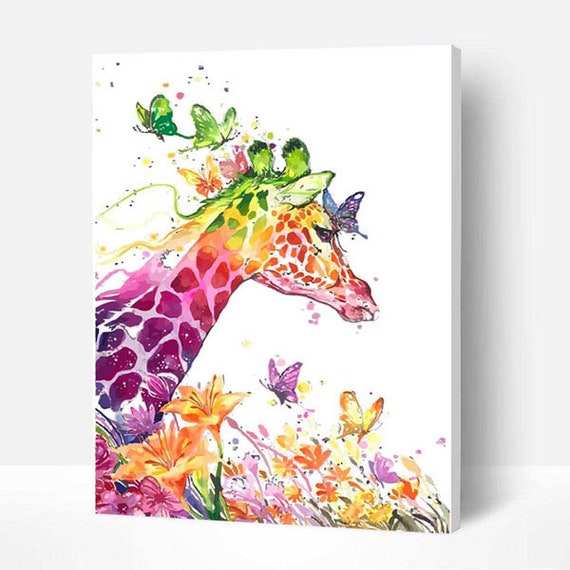 Paint By Numbers DIY Kit-Giraffe and Butterfly-Creative Wall | Etsy