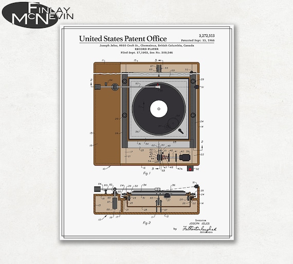 VINYL RECORD PLAYER Patent Fine Art Print Poster Colour | Etsy